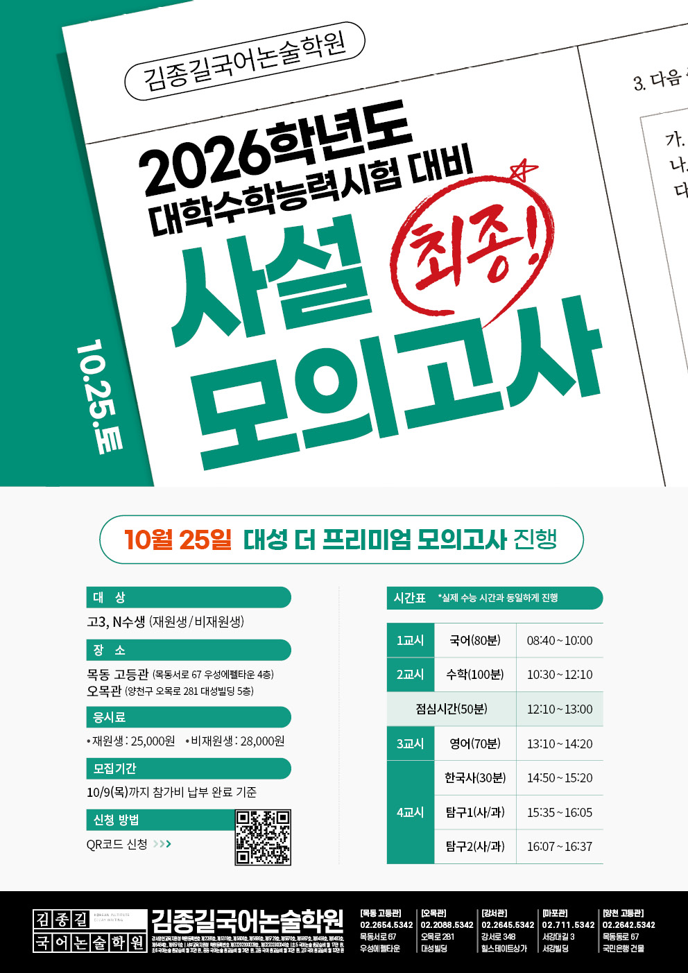 수능 마지막 대비! 10월 사설 모의고사 안내