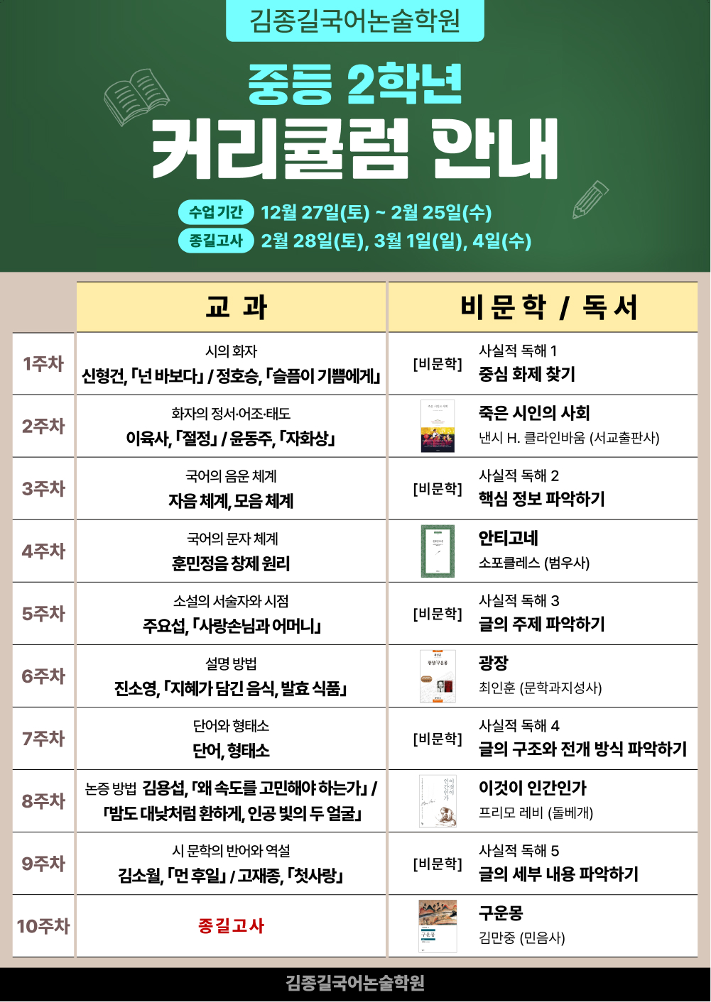 ☎ 김종길국어논술학원 중등부 연락처