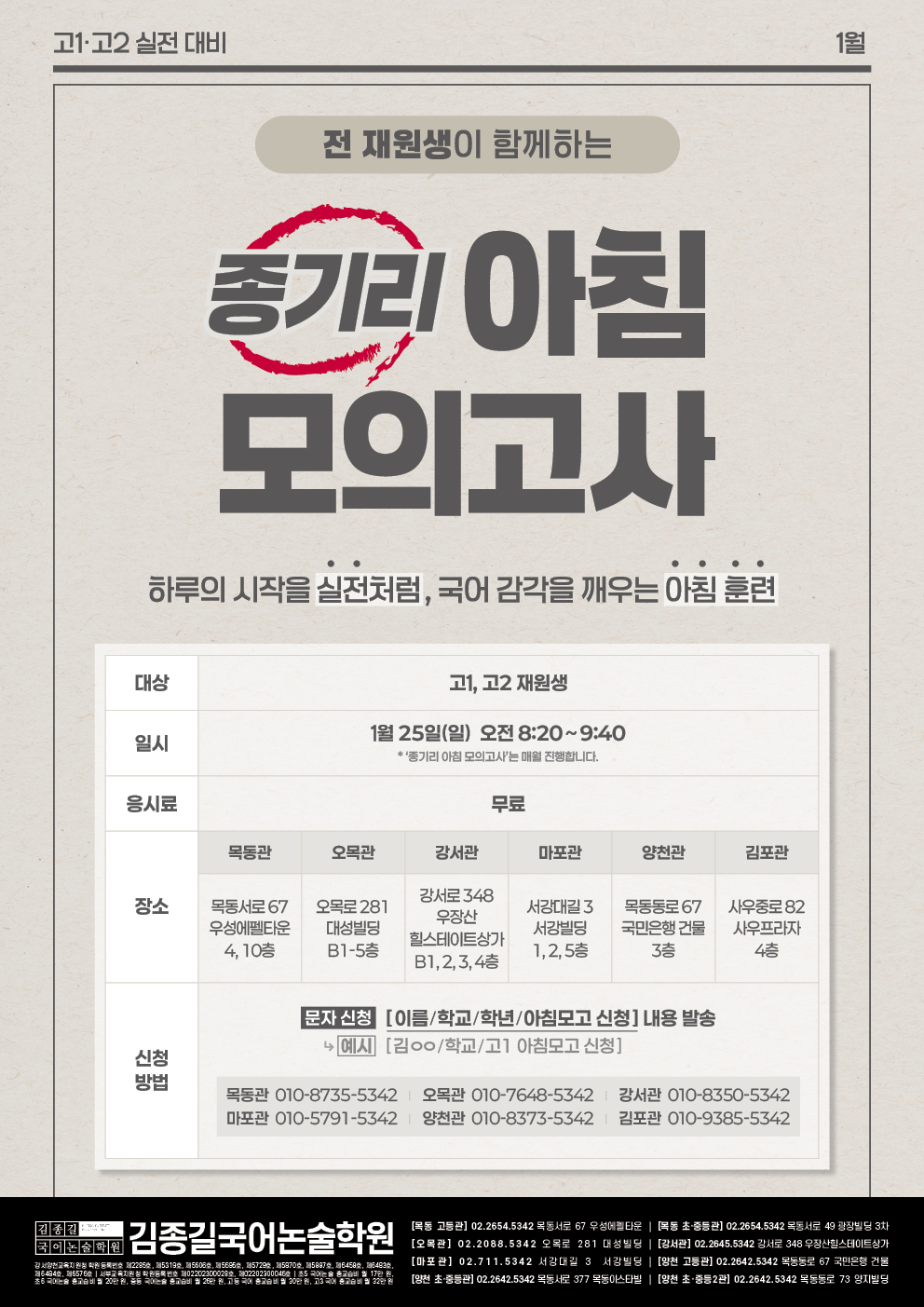 *신청 방법 : 신청 관으로 문자 발송 [이름/학교/학년/아침모고 신청]