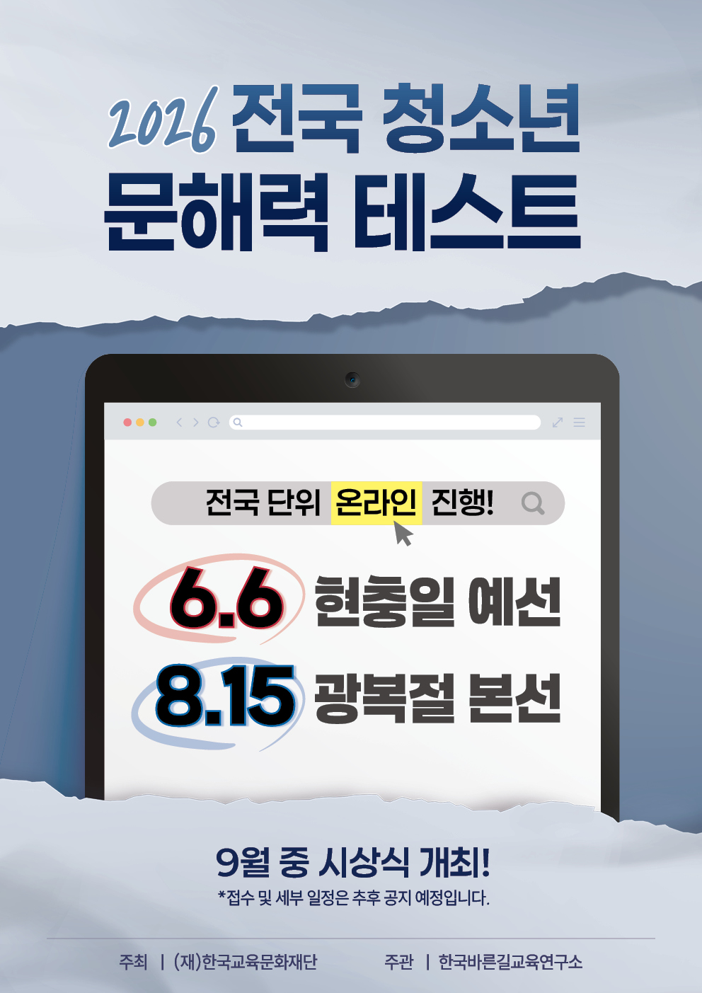 2026 전국 청소년 문해력 테스트에 응시할 수 있습니다.