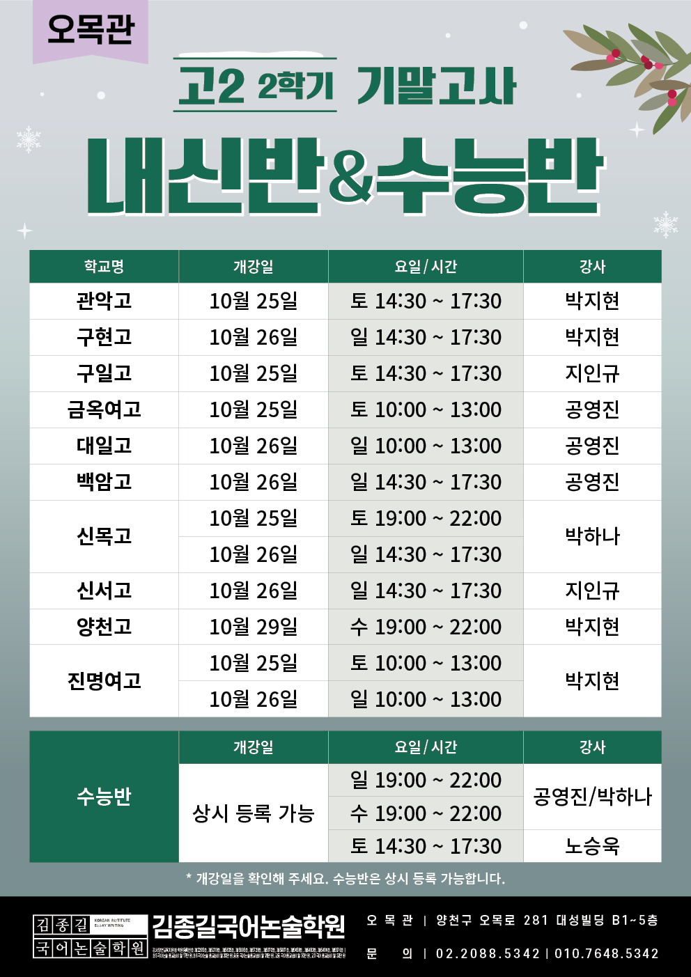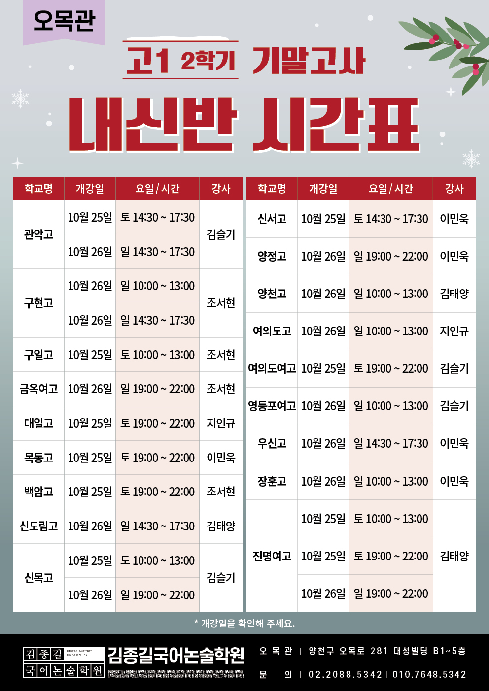 [오목관] 고등 2학기 기말고사 내신 시간표