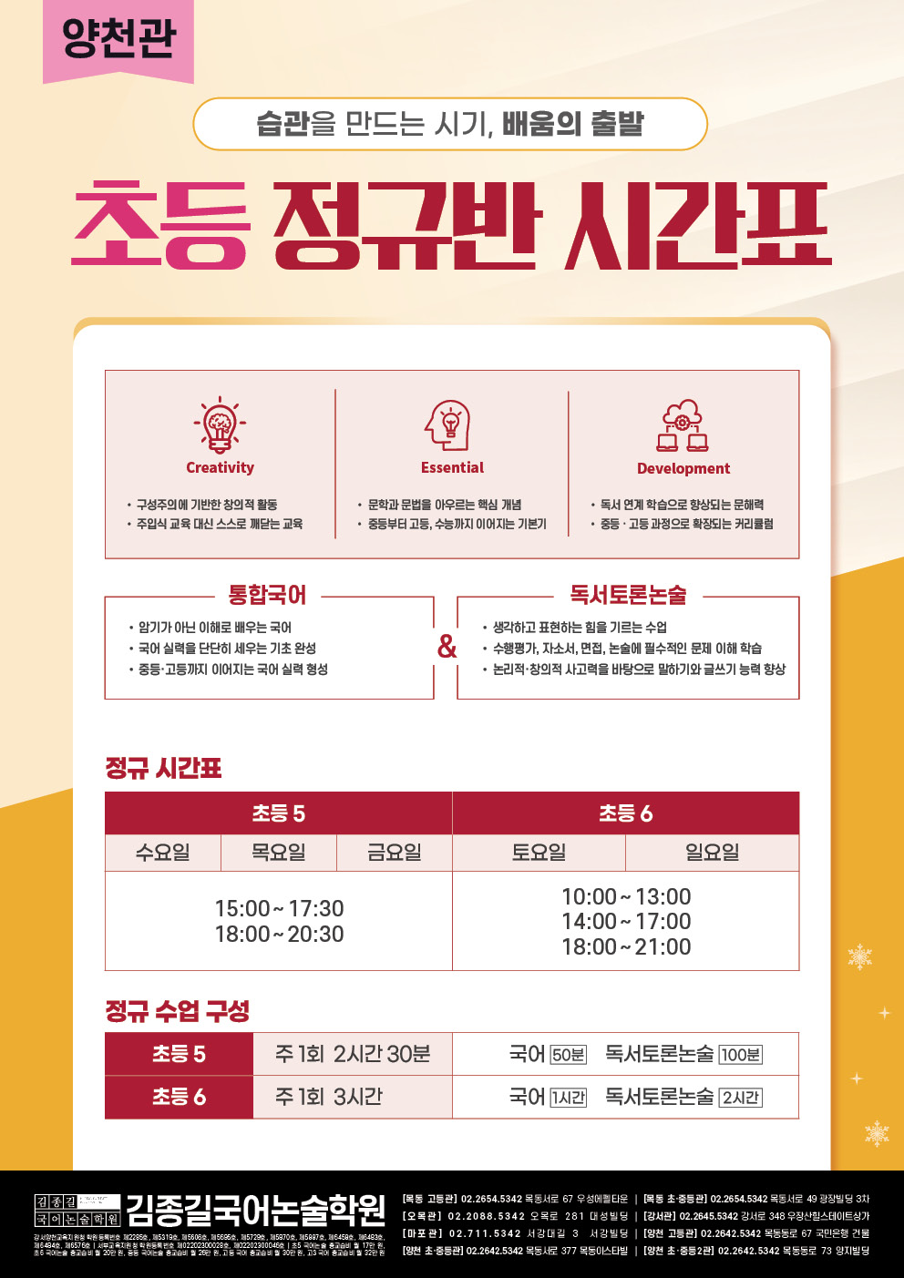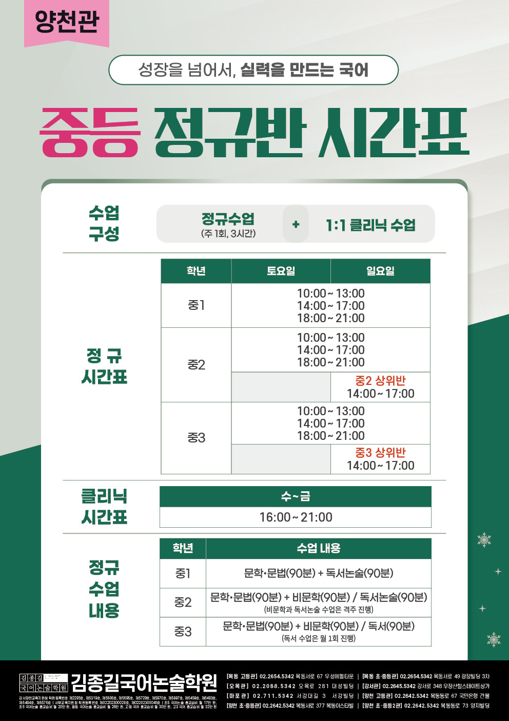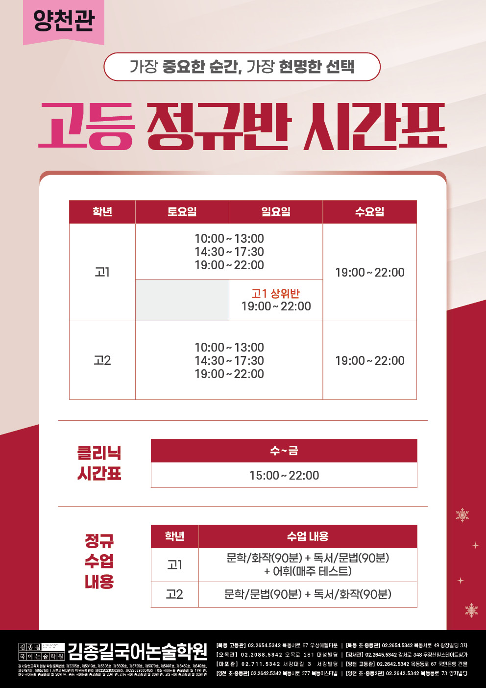 [양천관] 2026 정규반 시간표