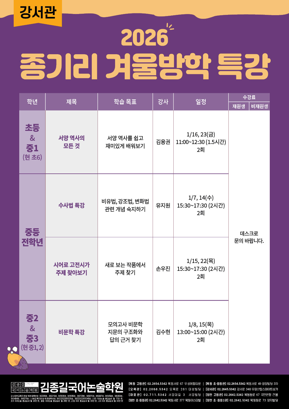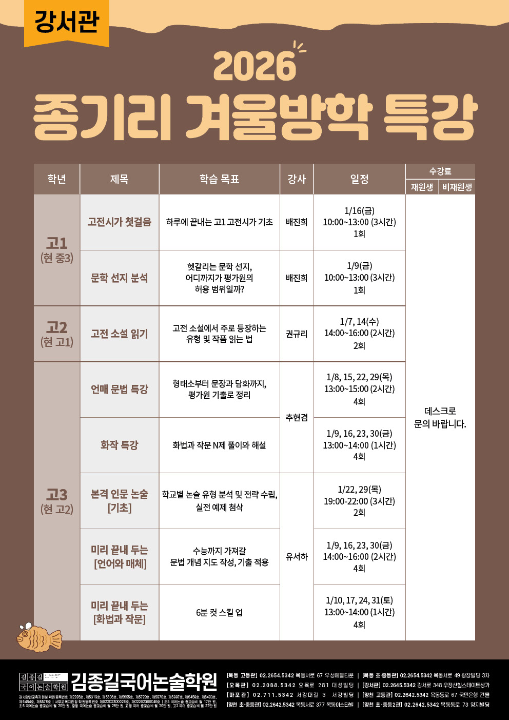 [강서관] 2026 겨울방학 특강 안내