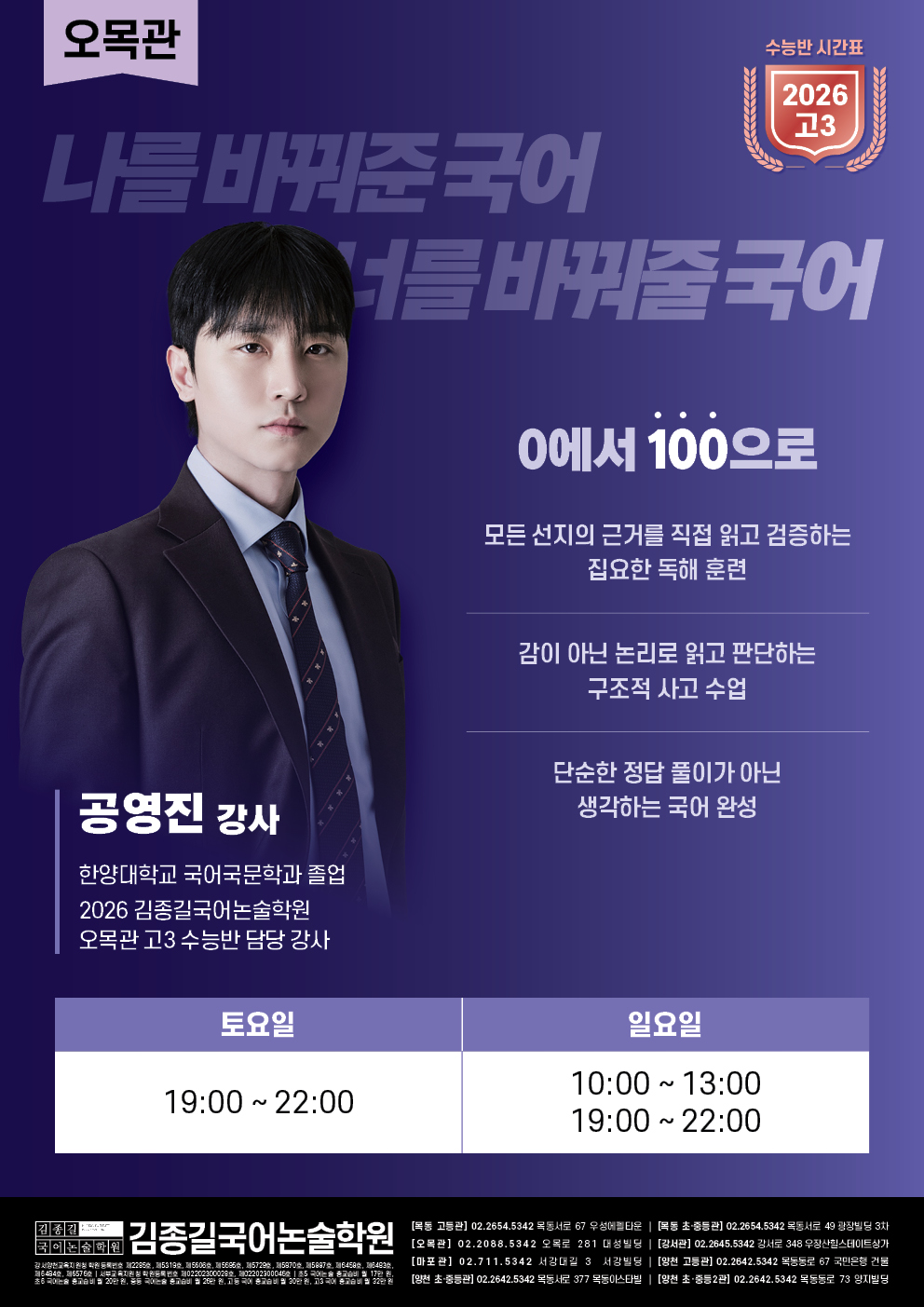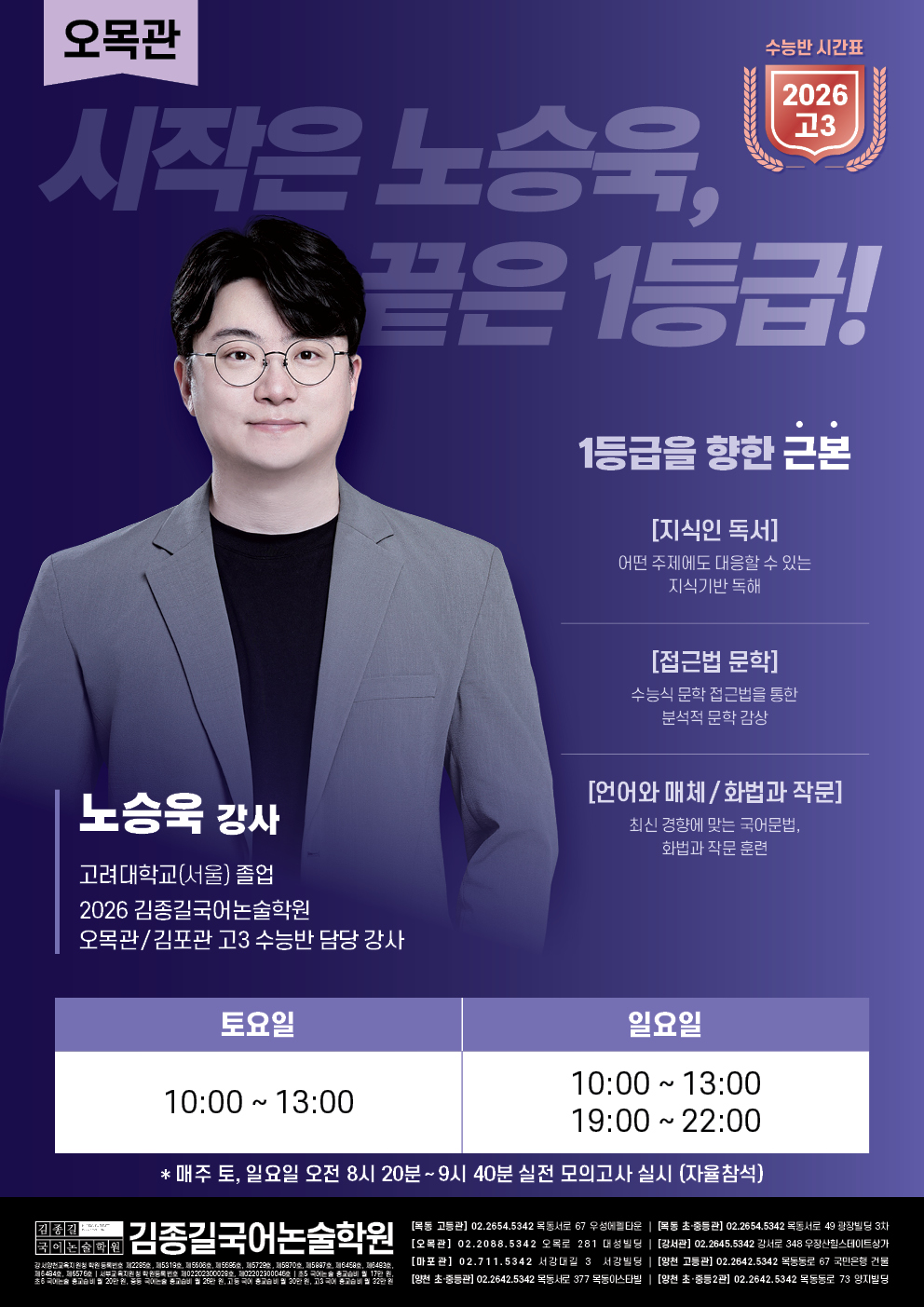 [오목관] 2026 고3 수능반 시간표 안내
